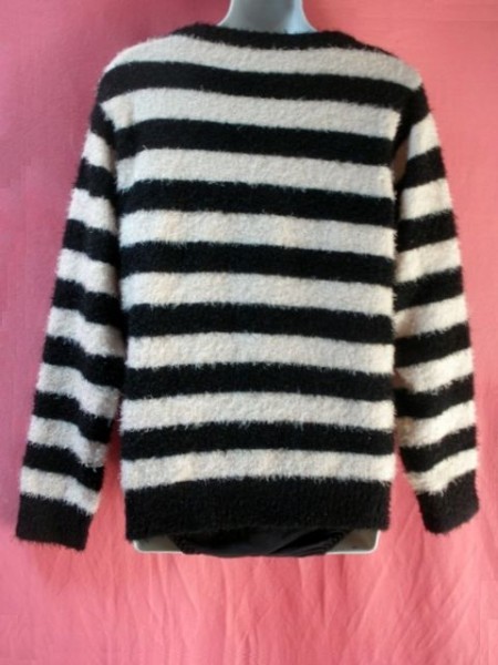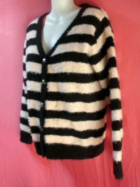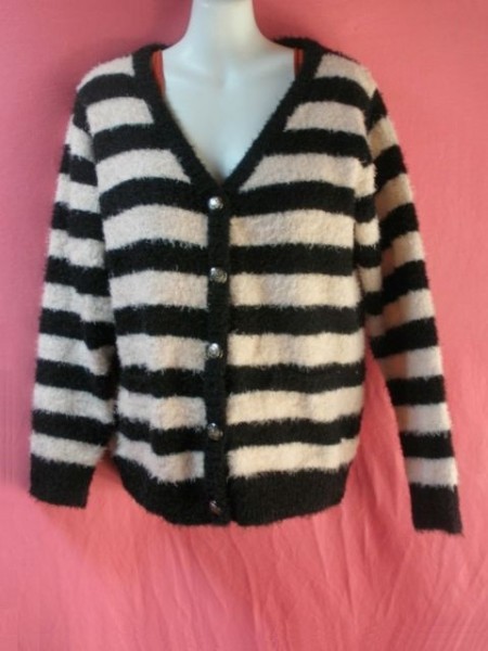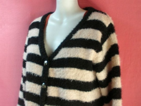 ・USED ボーダー柄 カーディガン 薄ピンク/黒系です。