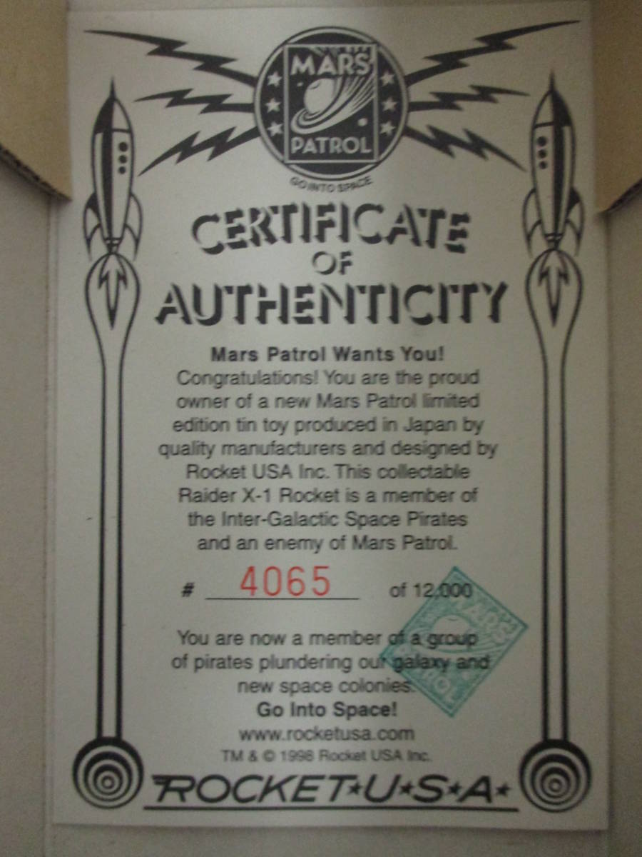 757      RAIDER X-1 ブリキTOY 限定生産品 ROCKET USA  4065/12,000