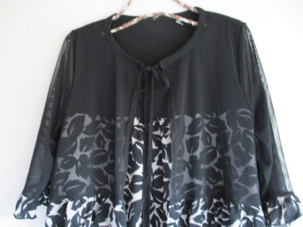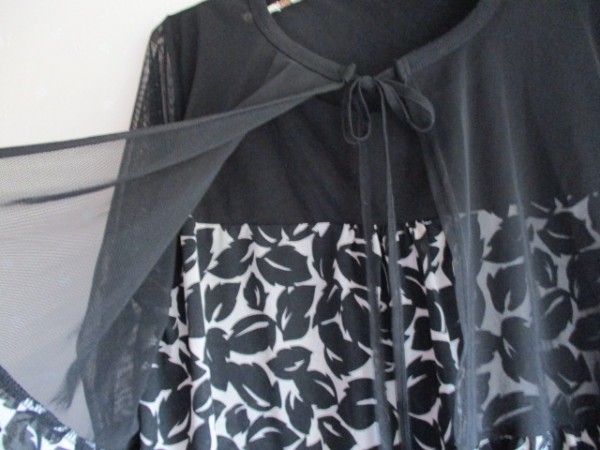状態:新品ではありませんが、特に目立つようなダメージはありませんので、まだまだ着ていただける状態です。黒いチュールのボレロが付いたようなデザインで、柄部分と一体です。現状でノークレーム・ノーリターンでご了承いただける方のみご入札をご検討下さい。 | |||