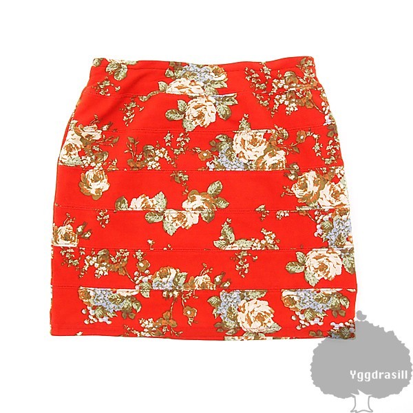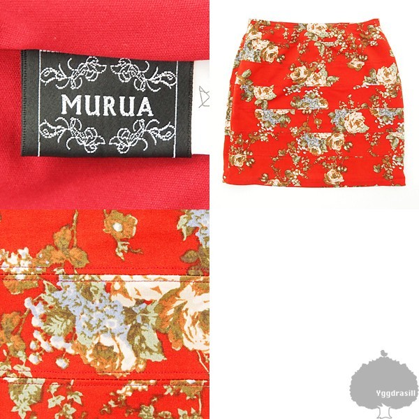 商品名:YGG■荻原桃子着■MURUA★ムルーア★花柄 タイト ミニ スカート 赤系 Mサイズ