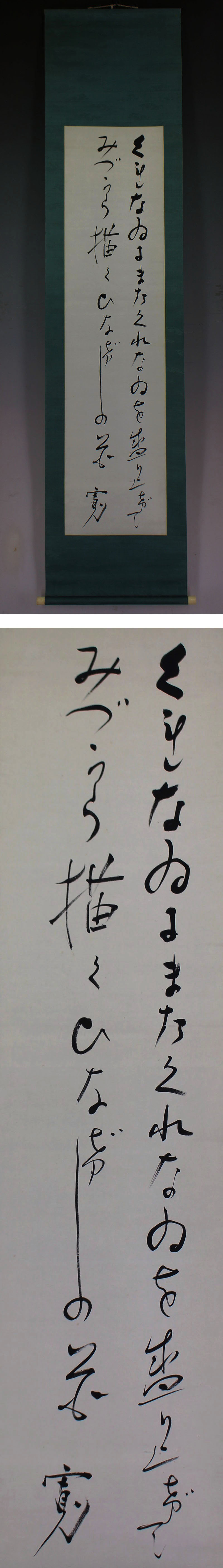 与謝野鉄幹 よさの-てっかん(1873-1935) 明治-昭和時代前期の歌人,詩人。 明治6年2月26日生まれ。与謝野礼厳(れいごん)の4男。明治25年上京,落合直文に師事し浅香社に参加。27年歌論「亡国の音」を発表し,和歌の革新をとなえる。32年東京新詩社を創立して「明星」を創刊・主宰,妻与謝野晶子(あきこ)とともに浪漫主義文学運動を推進した。昭和10年3月26日死去。63歳。京都出身。本名は寛(ひろし)。詩歌集に「東西南北」,歌集「相聞(あいぎこえ)」など。 本紙は、シミが少し、薄汚れがあります。 表装は、薄汚れがあります。 【サイズ】 作品 横約33.5cm×縦約137cm 表装 横約47cm×縦約201cm |