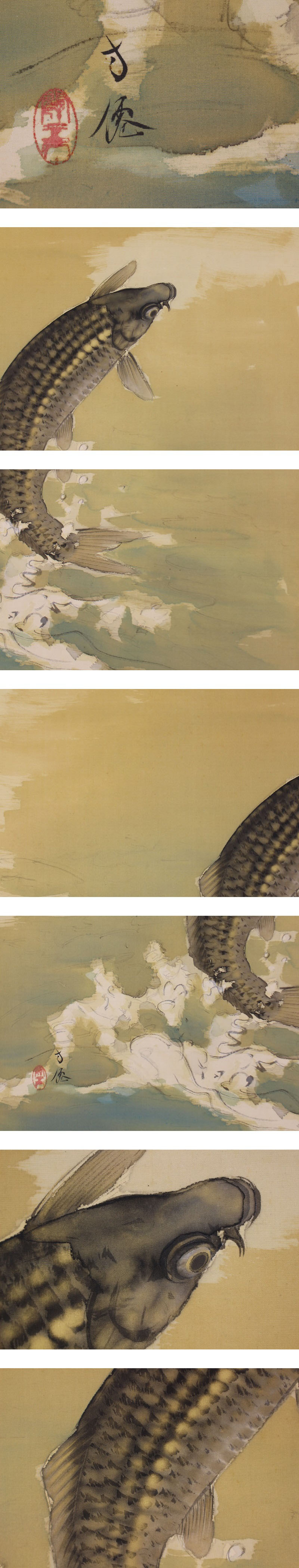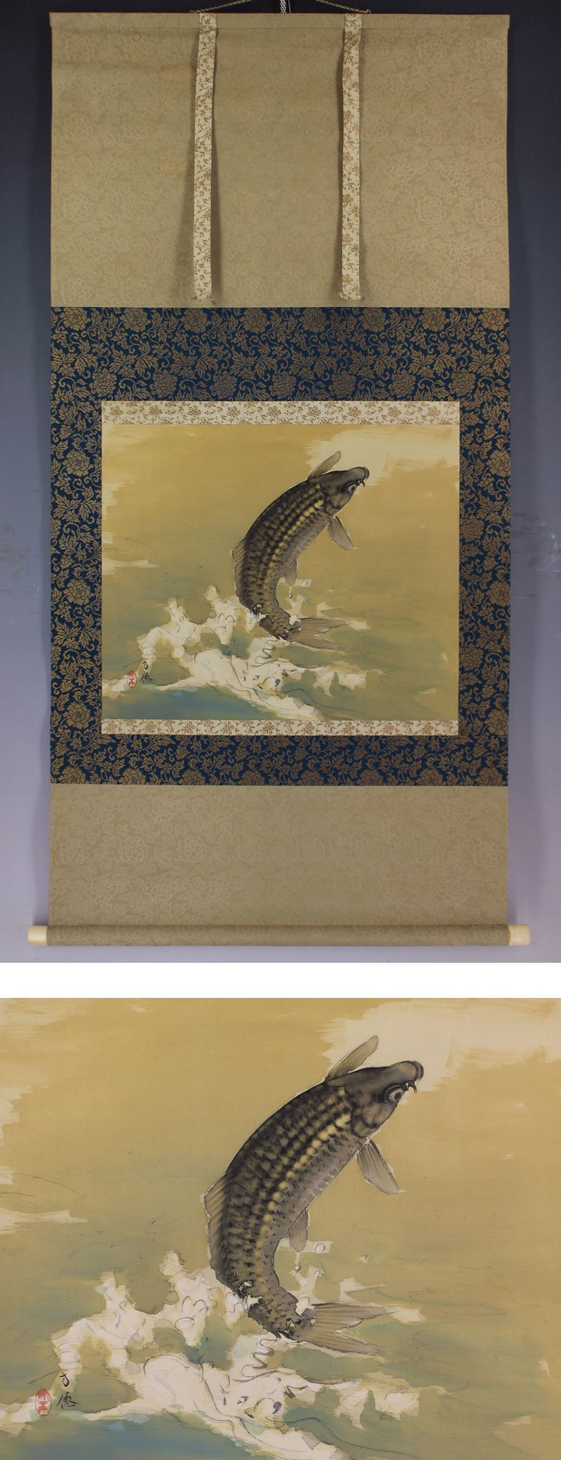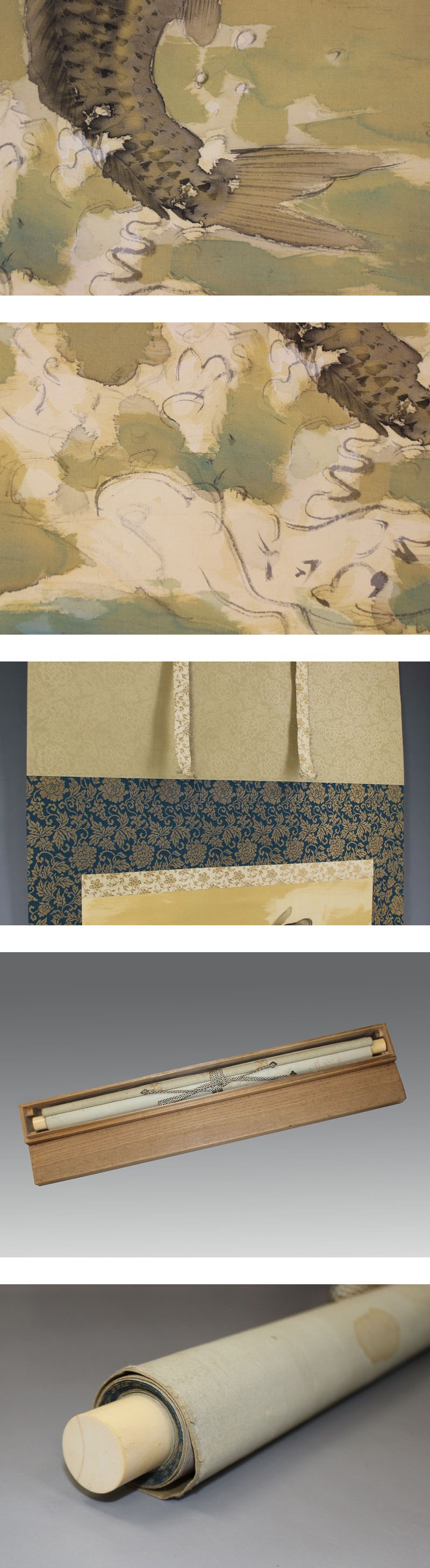 | №1612148 【真作】東原方僊【鯉】◆絹本◆合箱◆掛軸 | |