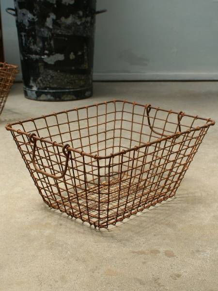 イギリスの蚤の市で見つけてきた古い フレンチワイヤーバスケットです。 使い込まれた風合いがとても素敵です。 元々、牡蠣の収穫用の物です。フランスといえばモンサンミッシェル湾で獲れる牡蠣が有名です。海水により均一に錆びているのがとても良い雰囲気です。 ガーデニングアイテムとして、 雑誌や小物整理の収納として、 工夫次第で色々活躍しそうです。 大きなダメージなくコンディション良好です。