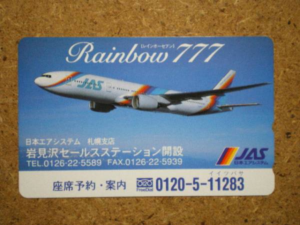 hi/GA5・日本エアシステム JAS 札幌店 岩見沢 Rainbow777 テレカ