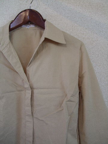 | 商品紹介 | ベージュのシンプルなシャツです。 開襟のエリと7分袖でスッキリした形です。 素材:綿98% ポリウレタン2% |