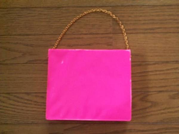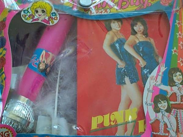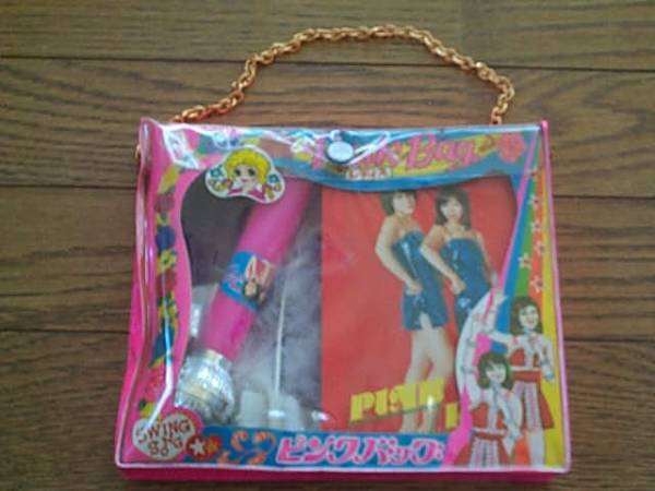 メーカー不明、当時物です。汚れ、キズがあります。未開封物です。バックサイズは約16.8㎝×20㎝×2.6㎝(厚さ)位です。チェーンが付いています。ビニール製です。バックの中身は外から見てわかる部分のみ書いておきます。①マイクの形のおもちゃマイク②羽飾り③ピンクレディのノート(メモ帖?)以上3点が外から見てありました。バックは未開封の為 中身の状態のチェックしておりません。
