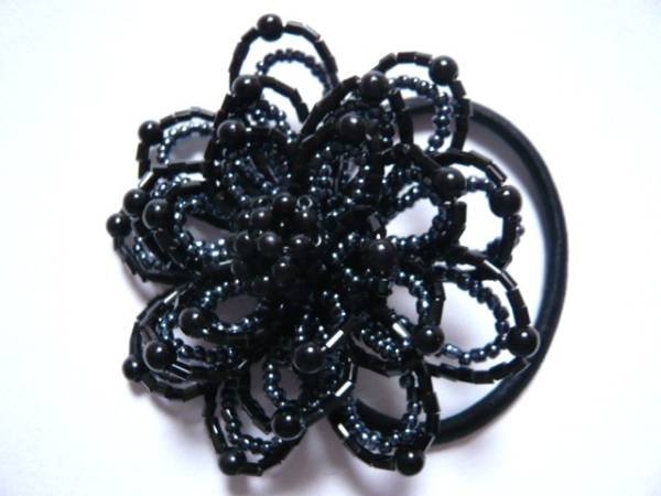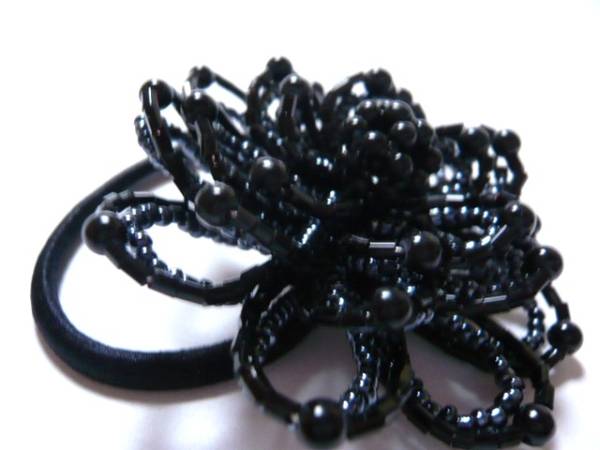 | 黒いビーズとのコンビネーションが、とても落ち着いた仕上がりです。 | ||