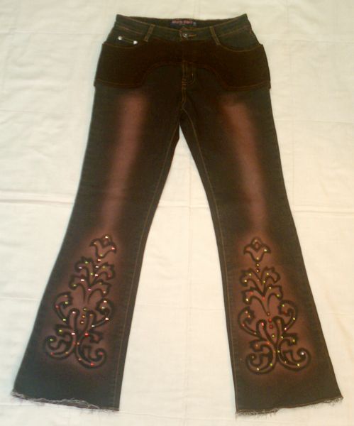 ■美品:Jiawei Jeans classic茶色のジーンズ 裾と腰に… Dm948