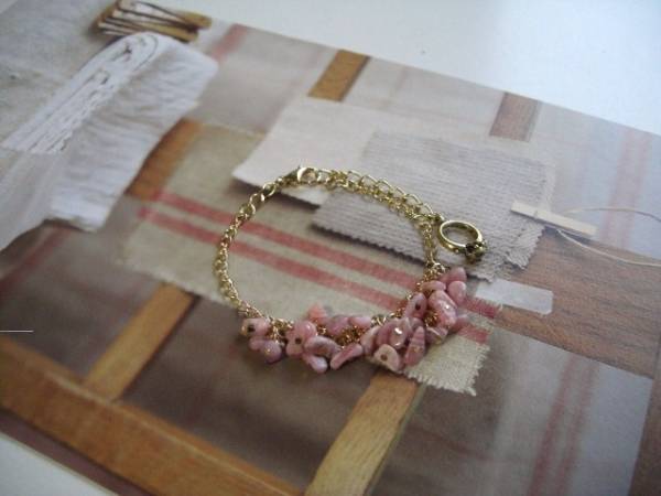 物語を紡いで・・シリーズです♪シックな薔薇色・・繊細なインカローズのブレスレットです♪シックな縞模様のインカローズのミニタンブルが可憐な表情です♪4ミリから5ミリ位のインカローズを華奢なチェーンに繋いでいます♪長さは全長23センチ位で調節自由です♪お揃いのブレスレットやネックレスやイヤリングも出品しています♪シンプルで飽きのこないいつまでも着けられるデザインを考えて作りました♪ハンドメイドをご理解頂いてノークレーム、ノーリターンでお願いします