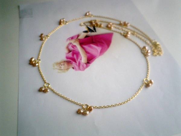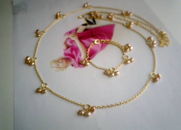 パンク・ガール・・シリーズです♪シックなベージュ色・・ふんわりやさしいベージュ色のネックレスとブレスレット2点セットです♪6ミリ位のバロックの淡水パールを華奢なチェーンに花びらのように集めて可憐な表情です♪長さは全長100センチ位で調節自由です♪2連にされても可愛いです♪ブレスレットの長さは全長23センチ位で調節自由です♪それぞれ単品やお揃いのネックレスやブレスレットも出品しています♪シンプルで飽きのこないいつまでも着けられるデザインを考えて作りました!ハンドメイドをご理解頂いてノークレーム、ノーリターンでお願いします