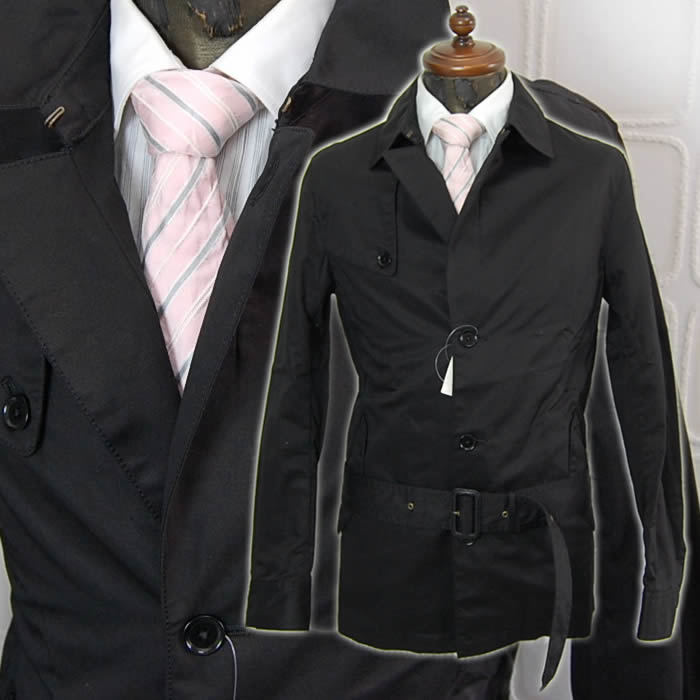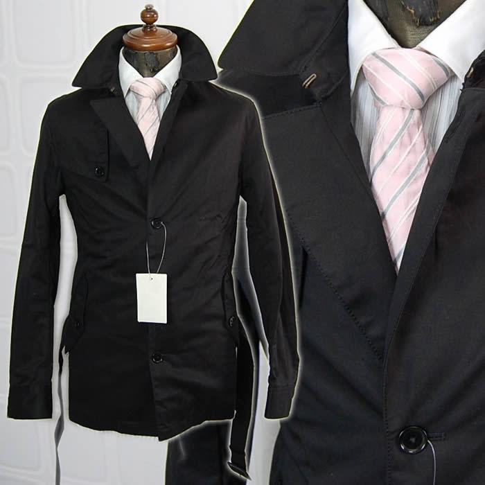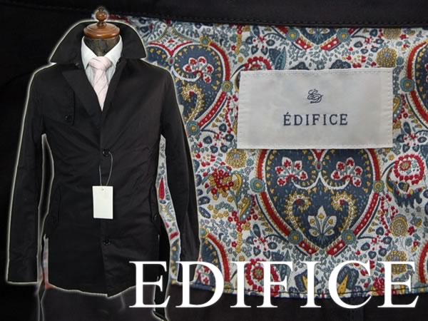 送料無料▼新品▼エディフィストレンチコートM黒▼EDIFICE ▼ステンカラーコート▼スプリングコート