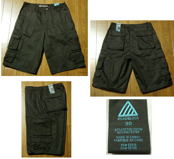 ● 未使用 アメリカ 購入 ROADBLOCK カーゴ ショートパンツ 30 / 西海岸/ THRASHER/ ビーチ/LA/ベニス/短パン/ミリタリー/ハーフパンツ/BK