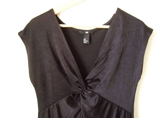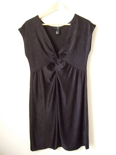 【H&M】オシャレ 胸元ひねり デザイン 素敵 スタイリッシュ 黒 ブラック サテン ミニ ワンピース S M 38☆パーティー リトルブラックドレス