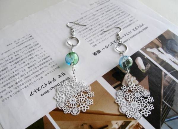 初夏のクローゼット・・シリーズです♪神秘的なガラス・・繊細な吹きガラスのピアスです♪爽やかなグリーンの吹きガラスにデザインリングや透かしチャームを合わせて儚げな表情です♪吹きガラスは12ミリのラウンドです♪長さは全長11センチ位です♪イヤリングにも変更出来ます♪お揃いのネックレスやブレスレットも出品しています♪シンプルで長く着けられるデザインを考えて作りました♪ハンドメイドをご理解頂いてノークレーム、ノーリターンでお願いします♪