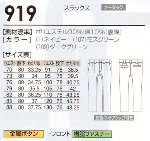 シャリ感が爽快な作業着シリーズです。快適なサマー裏綿を使用したスラックスです。定価は5565円です。