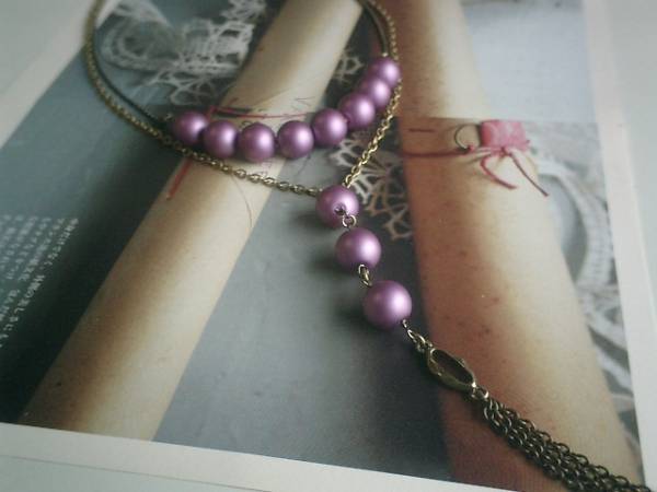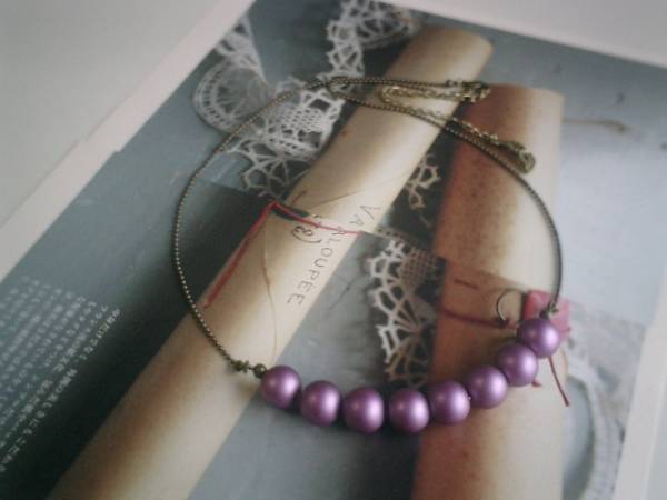 クレアの衣装箱・・シリーズです♪パール・レッスンⅣ・・ビロードのような光沢のガラスパールのネックレス2点セットです♪単品でも重ねても素敵です♪マットなダークパープルのガラスパールは12ミリの丸玉です♪真ん中のネックレスは華奢なデザインチェーンを合わせました♪長さは55センチ+アジャスター12センチで最長67センチ位です♪右のネックレスは華奢なボールチェーンを合わせてラリエット風のデザインです♪長さは63センチ+アジャスター12センチで最長75センチ位です♪トップは16センチ位です♪それぞれ単品やブレスレットやイヤリングも出品しています♪シンプルで長く着けられるデザインを考えて作りました!ハンドメイドをご理解頂いてノークレーム、ノーリターンでお願いします