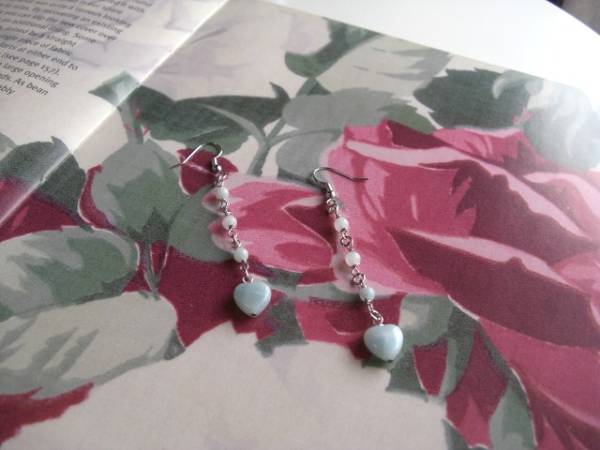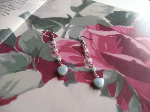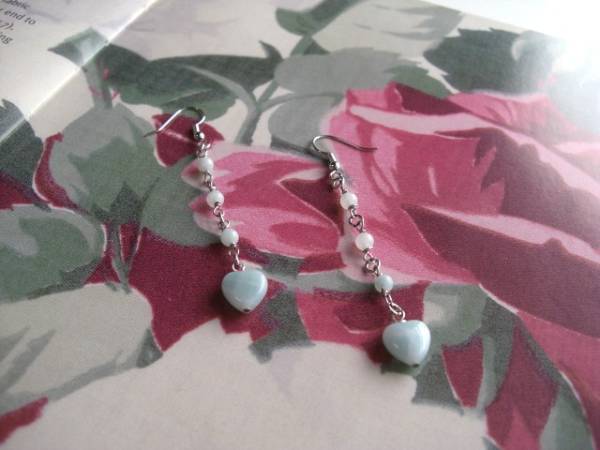 恋する人・・シリーズです♪水色の妖精・・アマゾナイトのピアスです♪シックでさりげなく華やかな雰囲気でまとめました♪ハートや丸玉のブルーグレーのアマゾナイトが可憐な表情です♪アマゾナイトは4ミリの丸玉に10ミリ位のハートを合わせました♪長さは7・5センチ位です♪イヤリングにも変更出来ます♪お揃いのピアスやネックレスやブレスレットも出品しています♪シンプルで飽きのこないいつまでも着けられるデザインを考えて作りました!ハンドメイドをご理解頂いてノークレーム、ノーリターンでお願いします