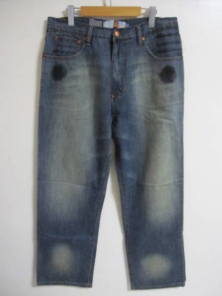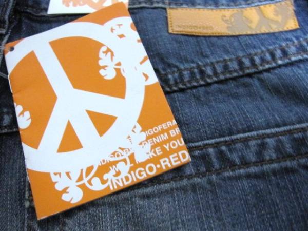 □INDIGO・RED/インディゴレッドブルーウォッシュデニムパンツ/W34☆新品