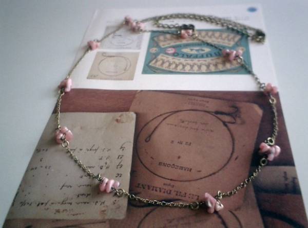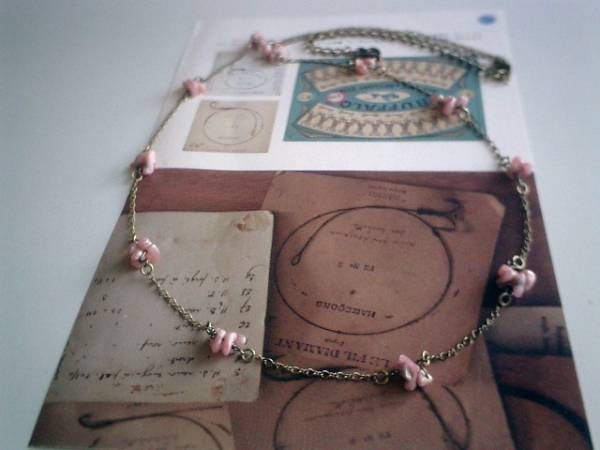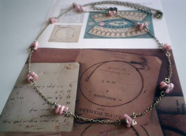 物語をアートして・・シリーズです♪小さな花束を集めて・・シックなインカローズのネックレスです♪チップのインカローズに繊細なチェーンを合わせて可憐な表情です♪インカローズのチップは小さな花束のように集めてランダムに繋ぎました♪長さは68センチ+アジャスター12センチで最長80センチ位です♪お揃いのネックレスやブレスレットも出品しています♪シンプルで飽きのこないいつまでも着けられるデザインを考えて作りました♪ハンドメイドをご理解頂いてノークレーム、ノーリターンでお願いします