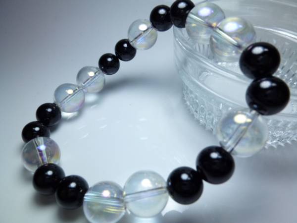 | 喜心-ブラックトルマリン-水晶内径15.5cm-天然石ブレス | |||