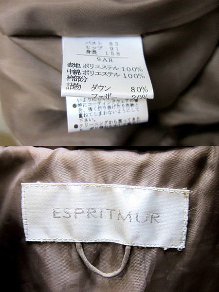 ■ESPRITMUR/エスプリミュール★ブラウンダウンコート9AR■H