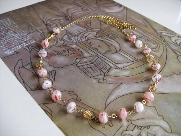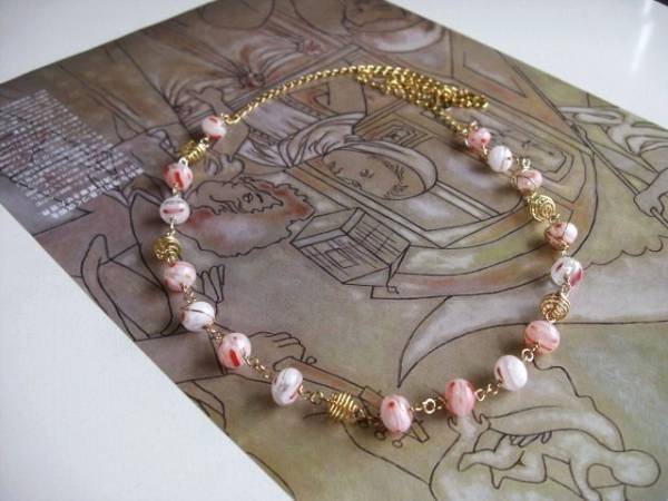 女の子スタイル・・シリーズです♪オリエンタル仕様・・シックなとんぼ玉のネックレスです♪淡い色合いのとんぼ玉にワイヤーボールを合わせてロマンチックな表情です♪8×10ミリ位のとんぼ玉にワイヤーボールを合わせました♪長さは全長70センチ位で調節自由です♪お揃いのネックレスやブレスレットも出品しています♪シンプルで飽きのこないいつまでも着けられるデザインを考えて作りました!ハンドメイドをご理解頂いてノークレーム、ノーリターンでお願いします
