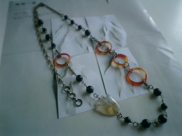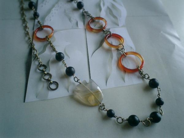 ニューヨーク・ニューヨーク!キュートなオニキスとお魚さんのネックレスを作りました♪ニューヨークモダンな雰囲気です♪♪オニキスは6ミリと8ミリのつやなし丸玉です。カーネリアンのリングとカーネリアンのお魚さんを合わせて個性的で可愛いです♪リングは19ミリから22ミリ位でお魚さんは24×20ミリ位です♪シックなお色で大人っぽい雰囲気です♪長さは全長74センチ位で調節自由です♪2連にしてチョーカー風にしてもブレスレットにしても可愛いです♪♪お揃いのブレスレットも出品予定です。ハンドメイドをご理解頂いてノークレーム、ノーリターンでお願いします