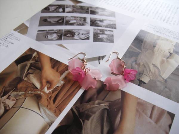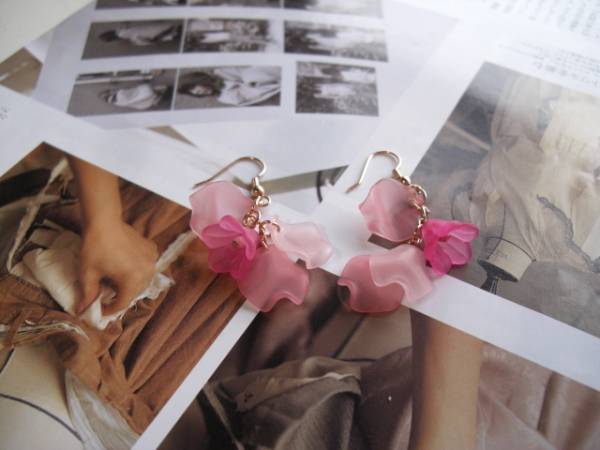 春の予感・・シリーズです♪花びらを紡いでⅡ・・モーヴ・ピンクやサーモン・ピンクやライト・パープルなど表情の違うアクリルの花びらのピアスです♪ピンク・ゴールドの金具で紡いでやさしい表情です♪花びらやお花は12ミリ位です♪長さは6センチ位です♪イヤリングにも変更出来ます♪お揃いのネックレスやブレスレットも出品しています♪♪シンプルで飽きのこないいつまでも着けられるデザインを考えて作りました!ハンドメイドをご理解頂いてノークレーム、ノーリターンでお願いします