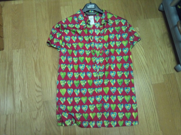 | VERSACEジャンニヴェルサーチ、ハート柄ブラウスシャツです。 サイズはレディースのMからL程度です。カラーは赤地に緑のハート柄です。 | |||||||||||||||||||