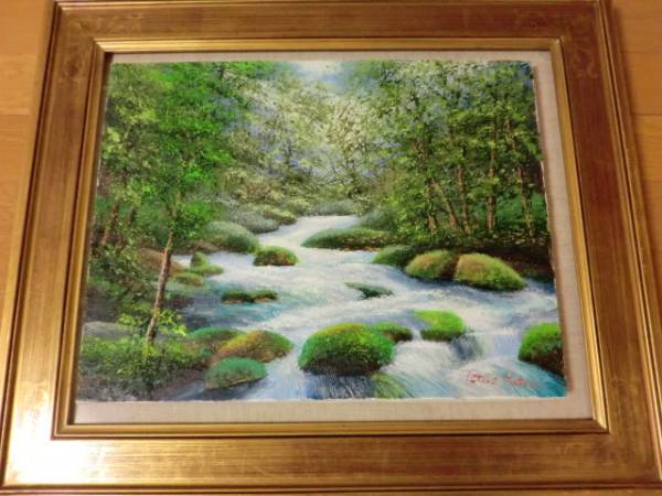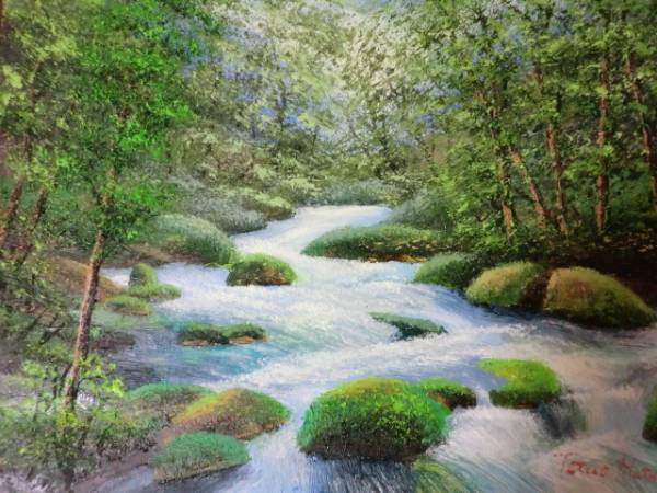 油彩 風景画 渓流 松井哲夫作で6号(32cm×41cm)です。