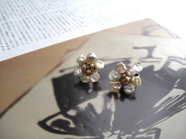 物語の始まり・・シリーズです♪人魚姫の涙・・・繊細な芥子パールのイヤリングです♪花びらのような芥子パールを重ねて可憐なお花を作りました♪芥子パールは8ミリから10ミリ位です♪お花の大きさは23ミリ位です♪ピアスにも変更出来ます♪お揃いのネックレスも出品しています♪シンプルで飽きのこないいつまでも着けられるデザインを考えて作りました♪ハンドメイドをご理解頂いてノークレーム、ノーリターンでお願いします