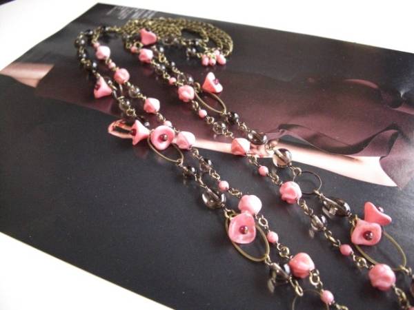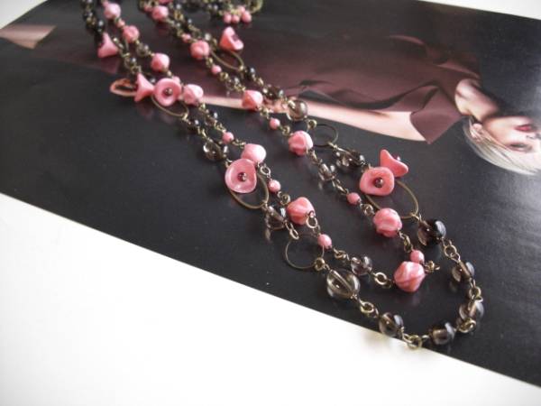 モダン・ガール・・シリーズです♪秘めた恋・・繊細なスモーキークォーツとチェコのお花のネックレス2本セットです♪神秘的なブラウンカラーのスモーキークォーツにシックなモーヴピンクのチェコのお花やチェコビーズやデザインリングを合わせてロマンチックな表情です♪スモーキークォーツは6ミリから14ミリ位までの丸玉やオーバルなどのデザイン違いです♪お花の方のネックレスの長さは全長102センチ位で調節自由です♪2連にされても素敵です♪短い方のネックレスの長さは全長85センチ位で調節自由です♪ブレスにされても可愛いです♪それぞれ単品やブレスレットやイヤリングも出品しています♪シンプルで飽きのこないいつまでも着けられるデザインを考えて作りました!ハンドメイドをご理解頂いてノークレーム、ノーリターンでお願いします