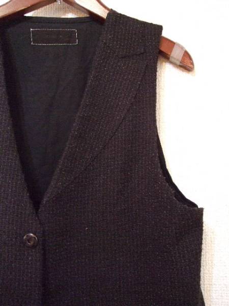 | 商品紹介 | 左襟のみ襟のような形が付いたデザインベストです。 織りのある風合いの生地で、1枚あるとオシャレの幅が広がる アイテムです。 フロントを留めるボタンは、元々なく、開けて着るデザインです。 《素材》 フロントボディ:ポリエステル100% バックボディ:コットン59% ナイロン38% ポリウレタン3% 裏地(フロントのみ):ポリエステル100% |