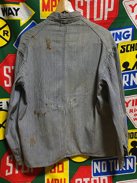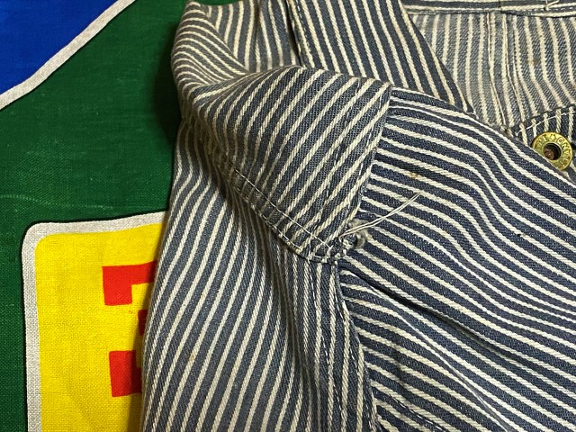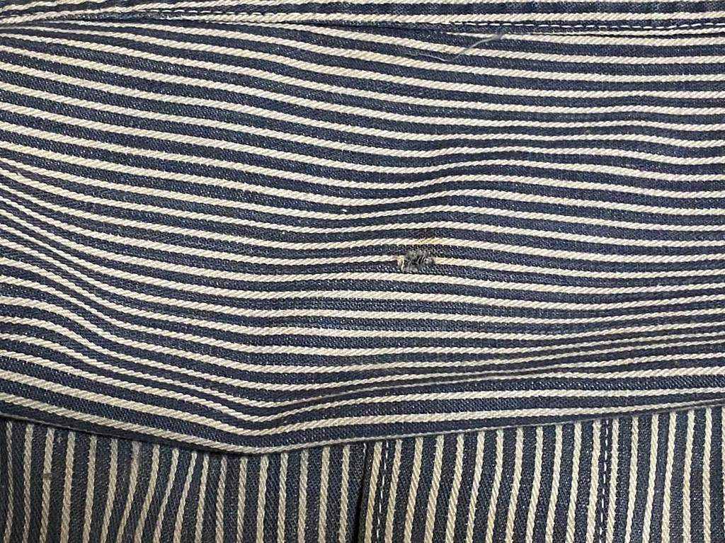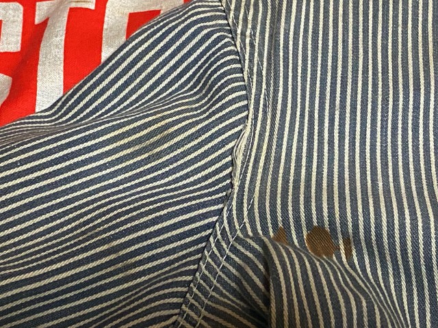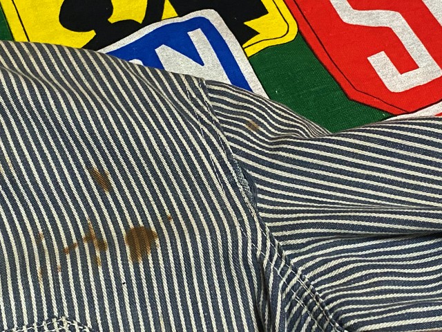 年代物らしく全体的に使用感はありますが、コレクションにもオススメな~1930年代頃のビンテージヒッコリーカバーオールです。