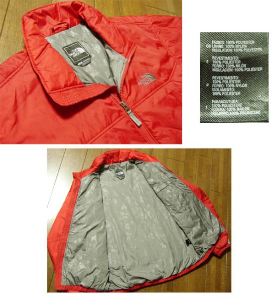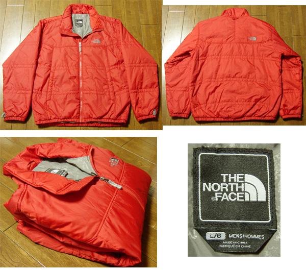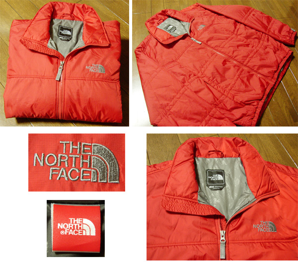 ノースフェイス 中綿 ナイロン ジャケットです。状態は、薄い擦れや薄汚れはありますが、デザインや色合いがとても可愛いです。アメリカで購入しました。サイズはLで実寸は、肩幅53cm、脇幅63cm、袖丈64cm、着丈70cmです。古い物とご理解頂いて、ノークレーム、ノーリターンでお願いします。