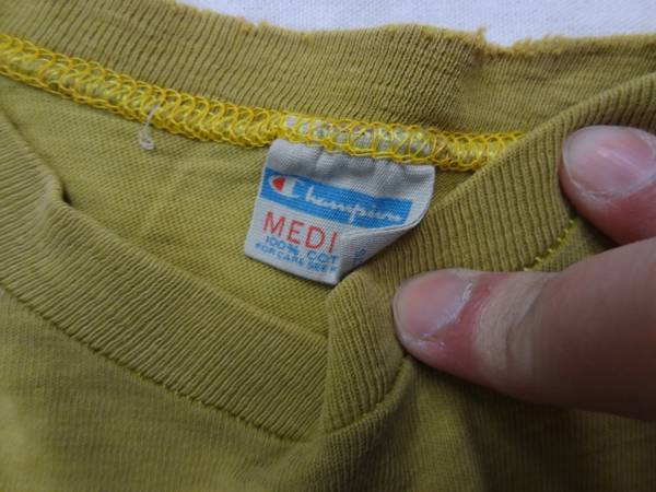 ビンテージ 希少 珍品 CHAMPION チャンピオン レア カラー 70S バータグ Tシャツ USA製 からし マスタード アジ 雰囲気 プリント 色 黄色