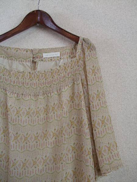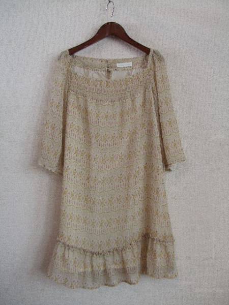 商品紹介 | 細かな花柄がかわいいワンピースです。 シフォンとAラインのふんわりとしたデザインもステキです。 ベージュ地にマスタードイエロー、赤茶、緑等でプリントが入っていて、 細いゴールドラメがストライプ状に施されています。 《素材》 表地・裏地:ポリエステル100% |