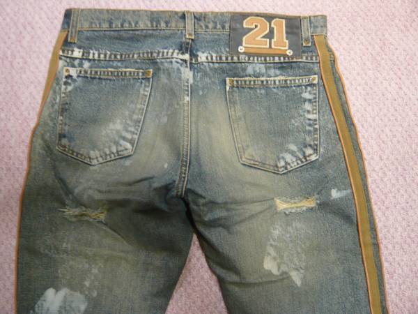 超希少なコレクションモデルの側章21パッチペイントクラッシュデニムです。
