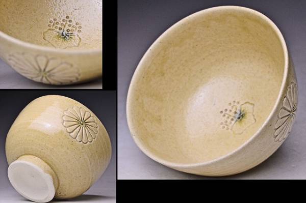 サイズは 125mmx高さ82mm です。 巨匠 加藤十右衛門 氏 加藤芳右衛門 氏に 師事された 名工 佐藤和子 氏の 作品です。 16花弁 の 菊花文 の 意匠に 気品ある 黄瀬戸釉 が 素晴らしい 逸品です。 写真を参考の上 入札下さい。 宅配便80サイズにて 発送します。他にも多数出品してます。同梱対応いたします。