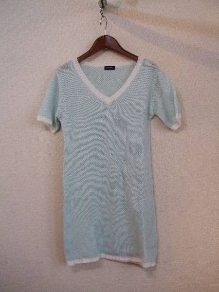 | 商品名 | Peroota水色×白Vネック半袖ニットチュニック(USED)12314 |