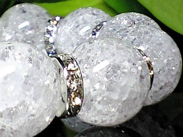 天然特有のレインボーが所々見られます、ひび割れた水晶の部分が再結晶した事により水晶よりも強い浄化作用、魔除け、邪気払い等があるといわれています。