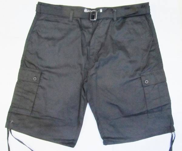 AG76)NEW NATIONベルト付カーゴハーフパンツ黒46/52/大きいサイズ