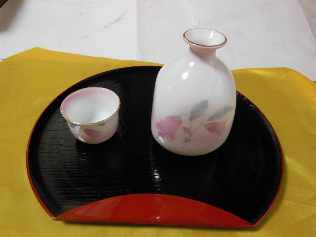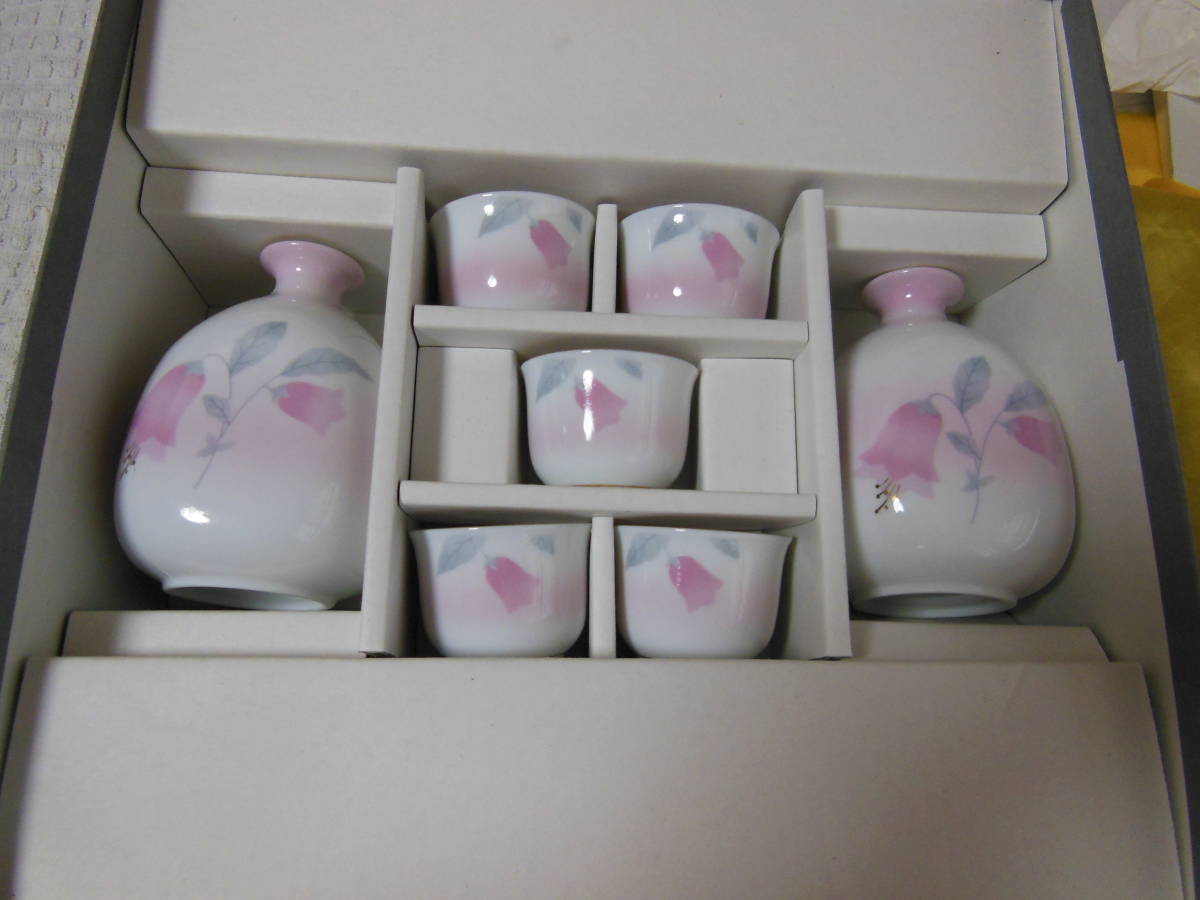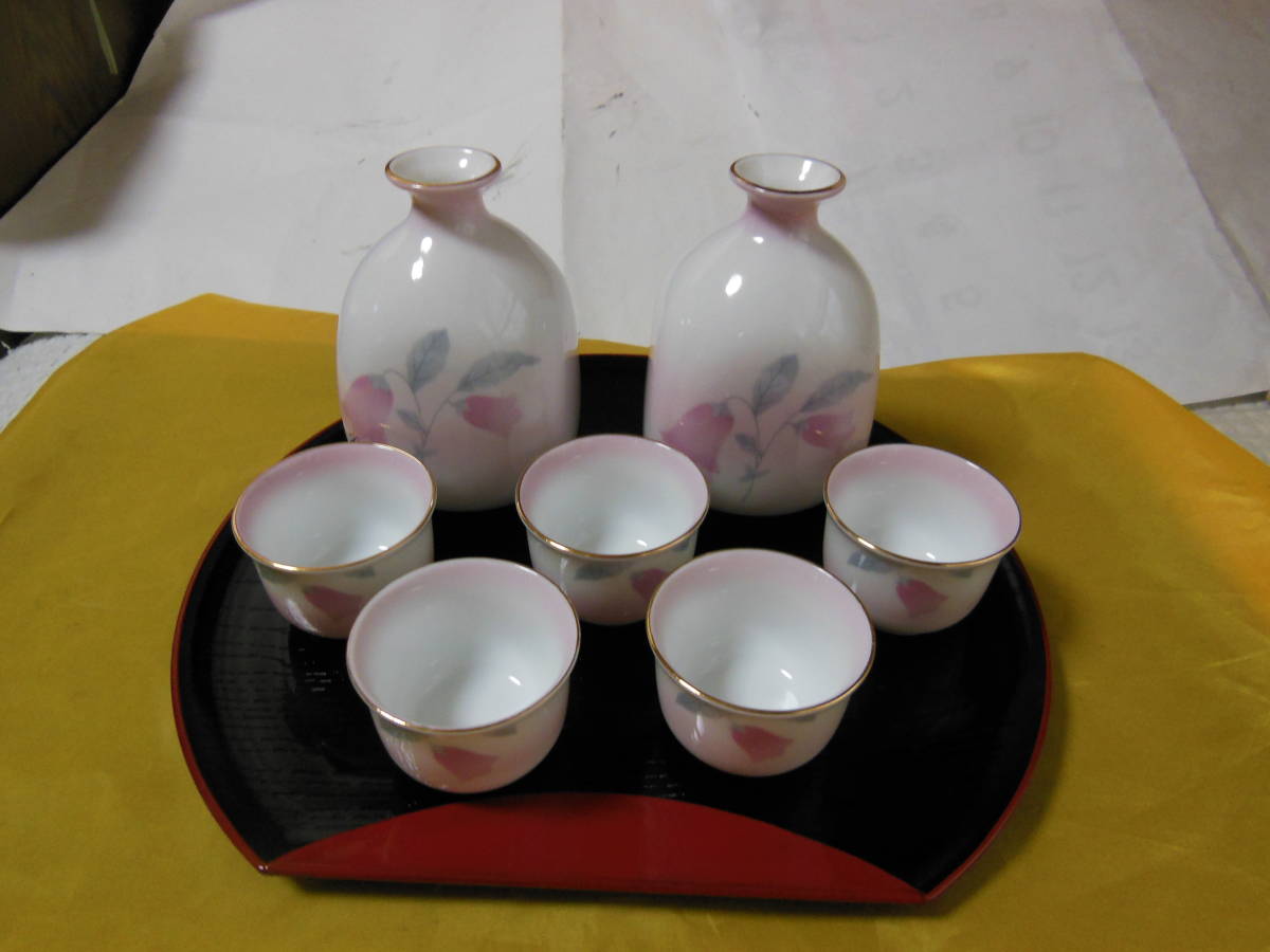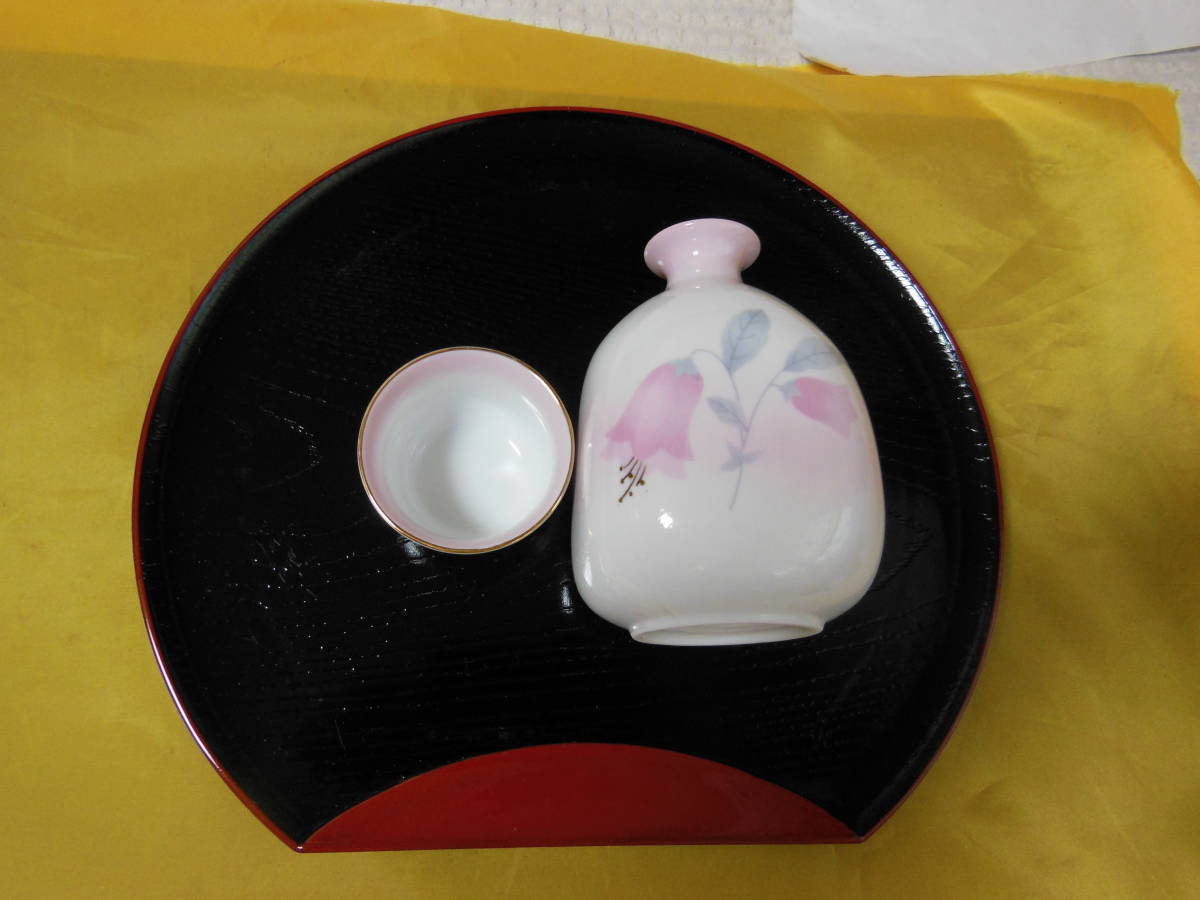 未使用品 翠泉 万葉草花酒器揃・お盆付き 8点セット 徳利 2 ぐいみ 5 箱付き 送料無料