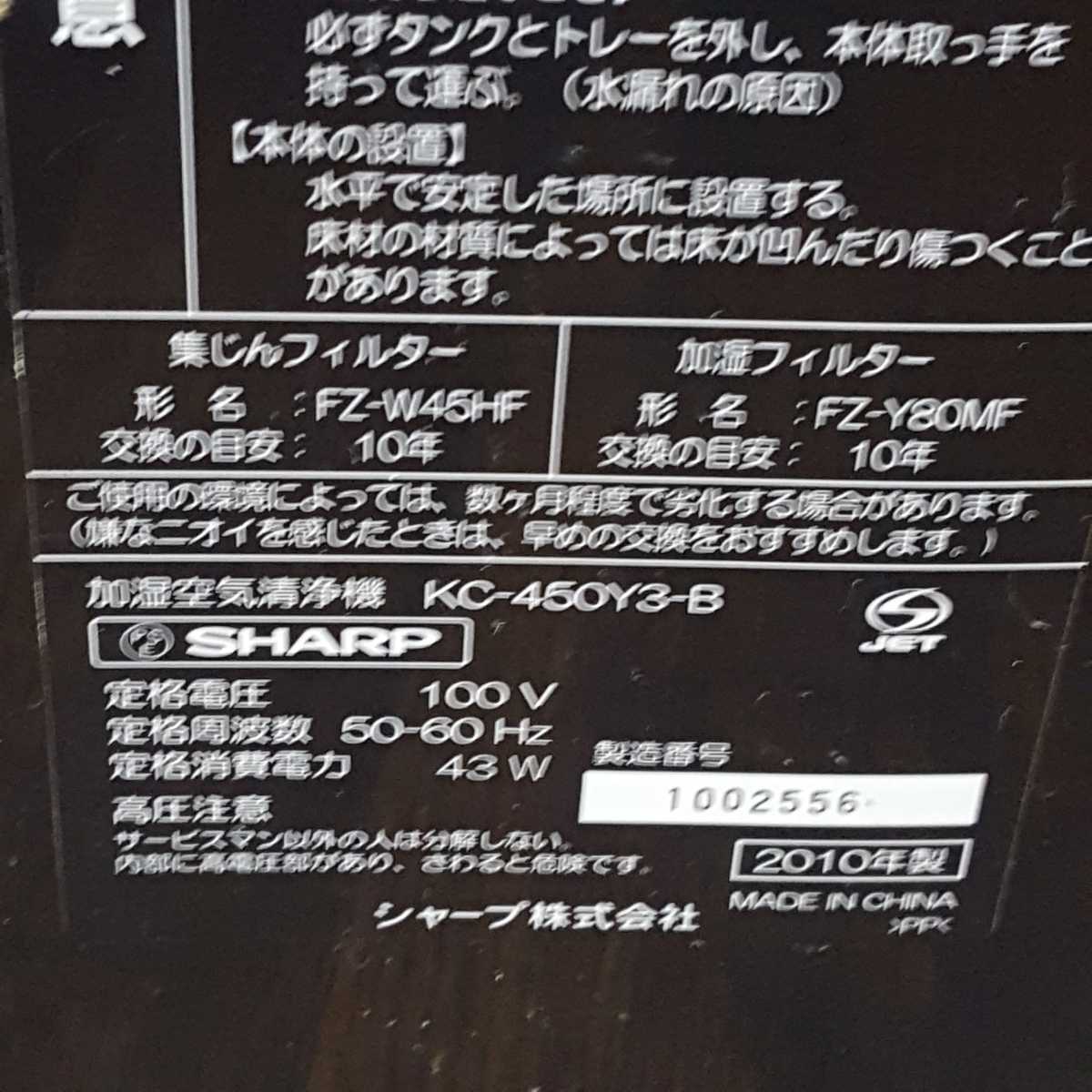 シャープ 加湿空気清浄機 KC-450Y3-B 2010年製