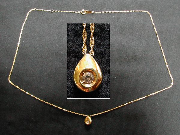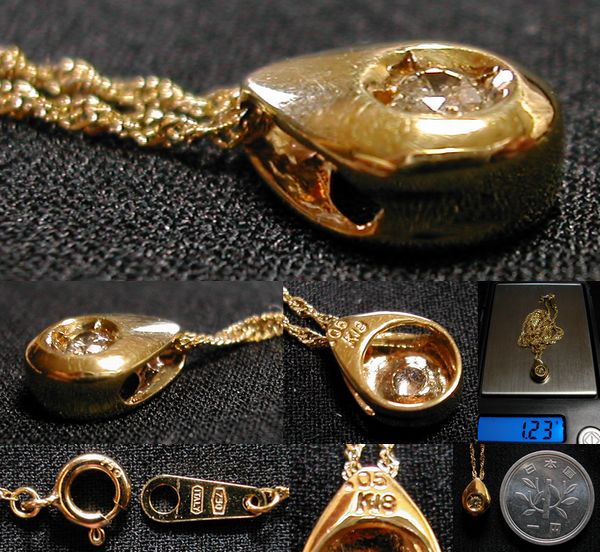 0.05ctのダイヤが付いた18金雫型のトップと18金(750)チェーンのイタリー製ネックレスです。
