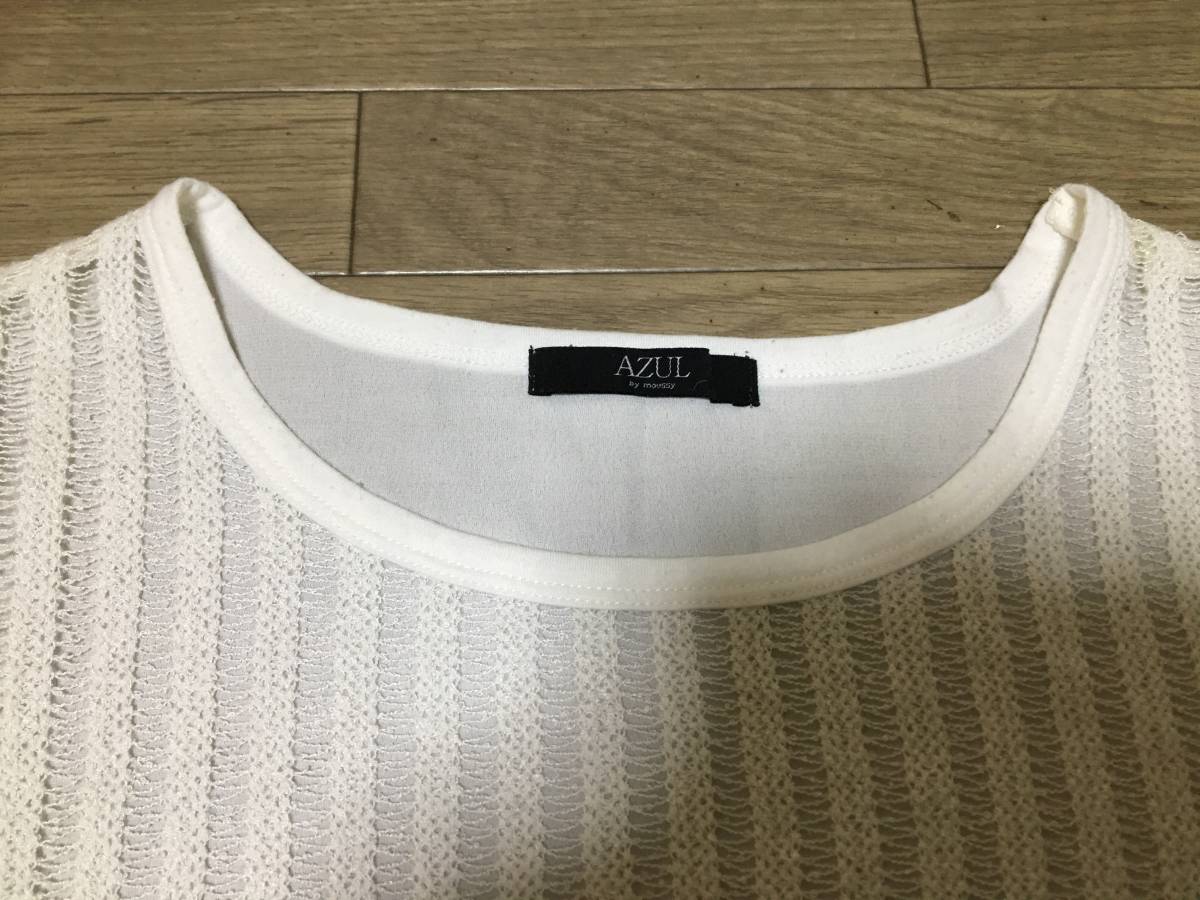 おなじみ大人気、AZUL by moussyのシアー長袖トップス 白 サイズMです。