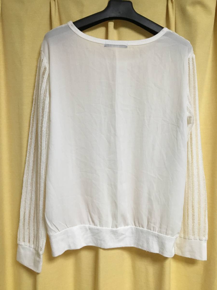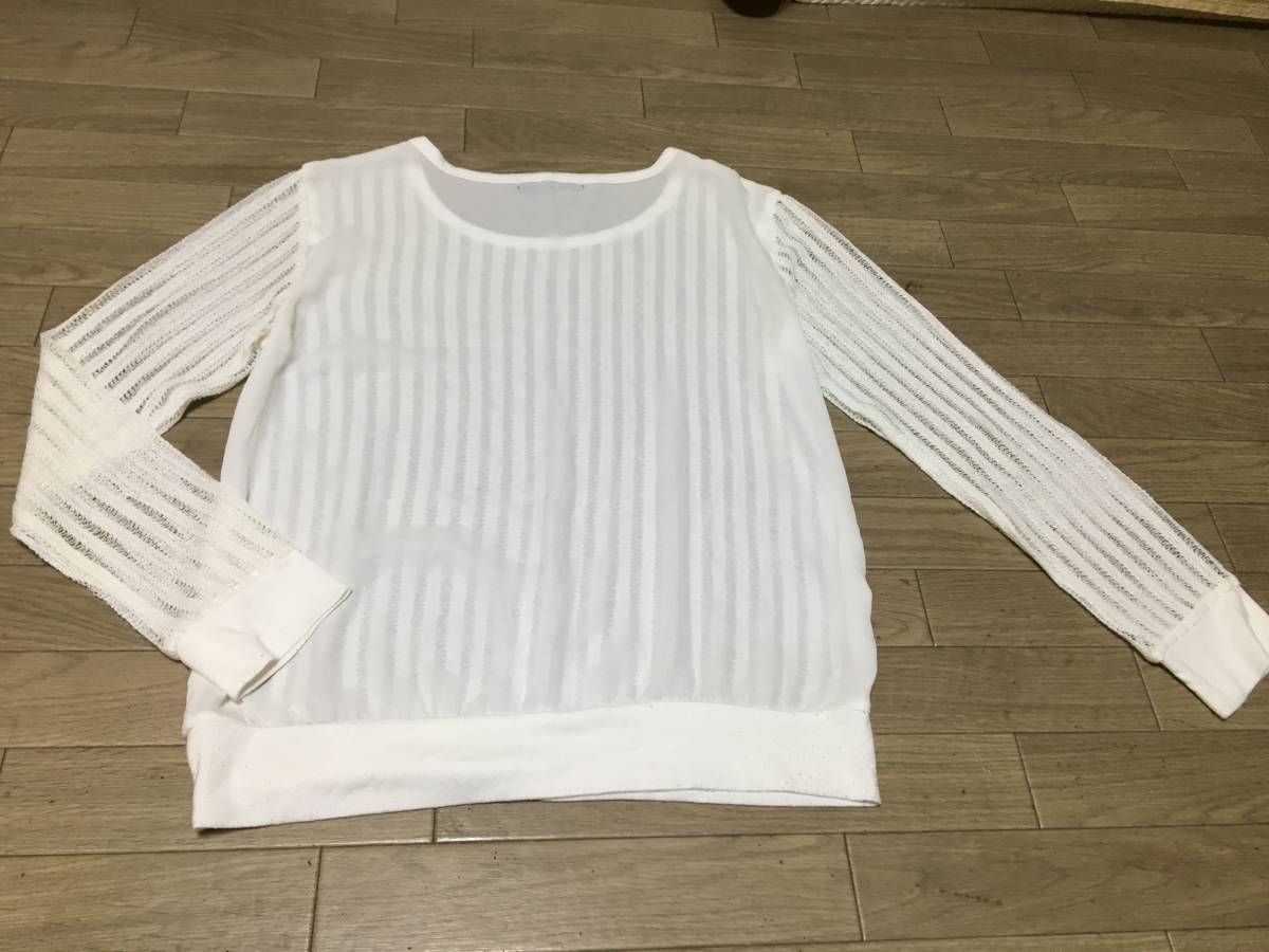 白の長袖の透け感のあるトップスで、前はレース、後ろはシフォン素材になっていて涼しげでいい感じです♪