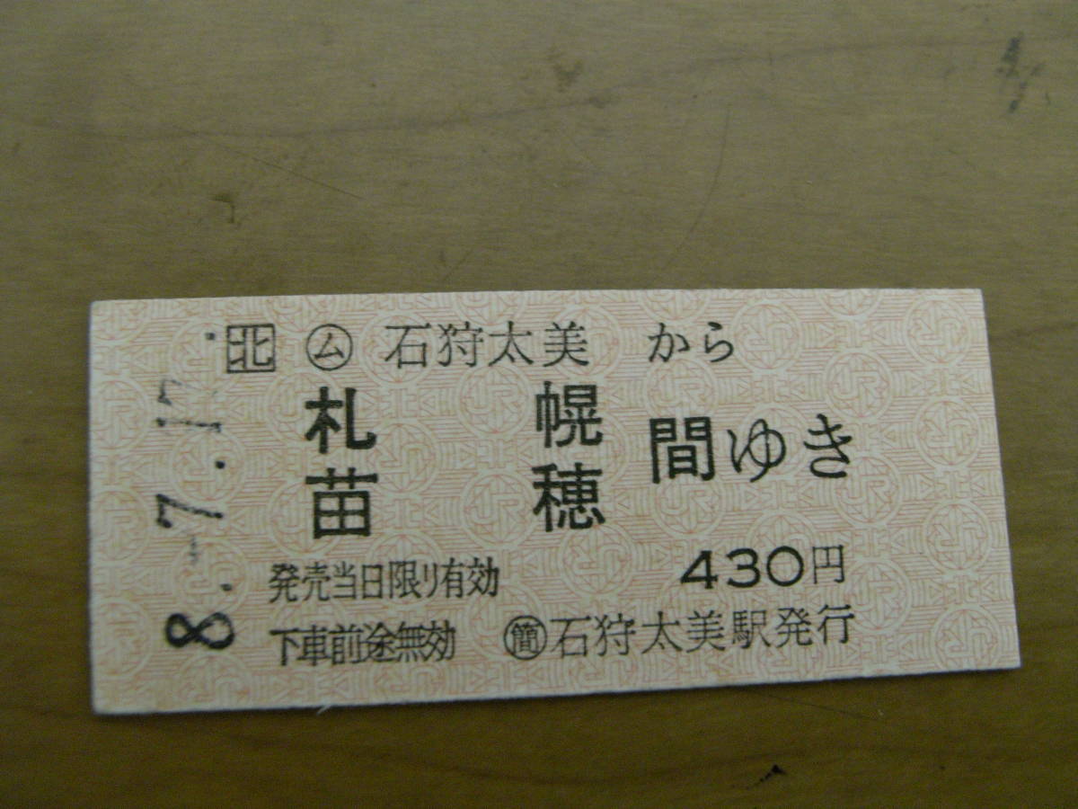 札沼線 ム石狩太美から札幌 苗穂 間ゆき 430円 平成8年7月17日 簡 石狩太美駅発行