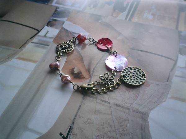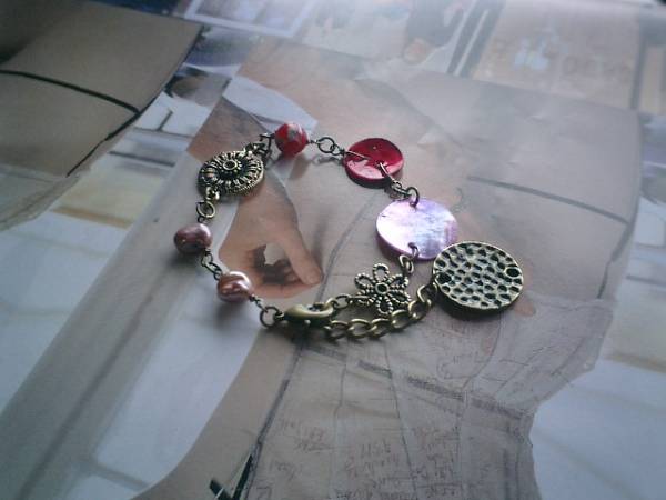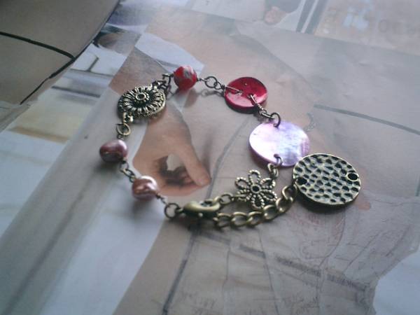 巴里・ロゼッタ・・シリーズです♪オペラ座の恋・・個性的な素材のシックなブレスレットです!大人色の異素材を集めました♪モーヴピンクやダークレッドのシェルは15ミリと18ミリ、小花柄のベネチアビーズは8ミリの丸玉、モーヴピンクの淡水芥子パールは8ミリ位です♪デザイン違いメタルチャームやアンティークビーズを合わせてアンティークな表情のブレスレットです♪長さは全長22センチ位です♪お揃いのネックレスも出品しています♪♪シンプルで飽きのこないいつまでも着けられるデザインを考えて作りました!ハンドメイドをご理解頂いてノークレーム、ノーリターンでお願いします