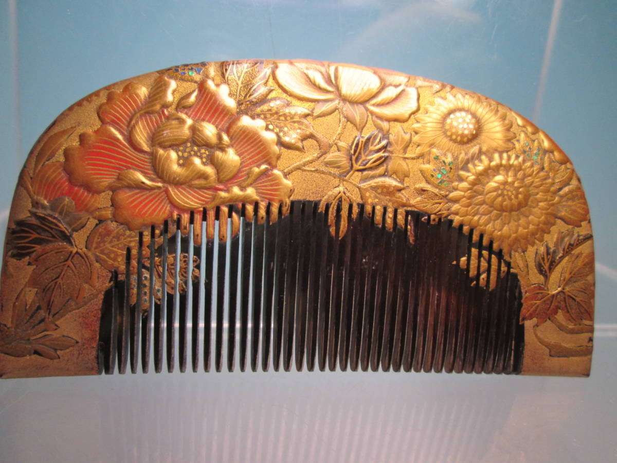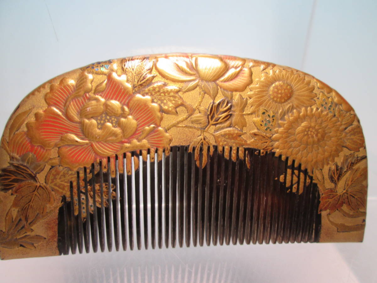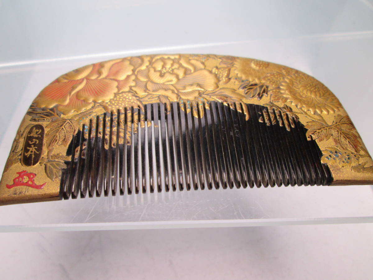 総金高蒔絵の豪華な素晴らしい細工の櫛です。状態は良く、虫食いは有りません。